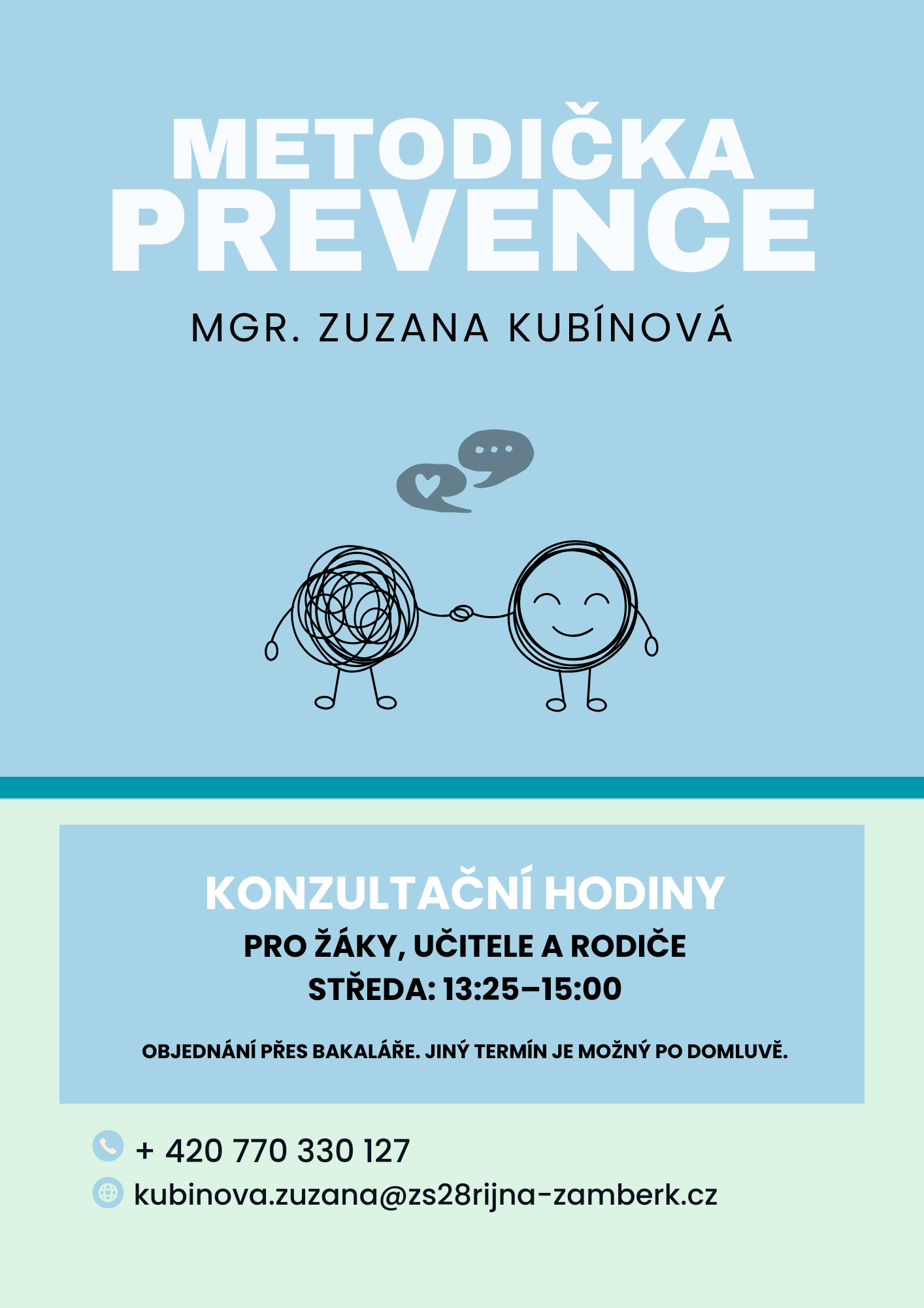 Funkci "Školní metodička prevence (ŠMP)" na škole vykonává: Mgr. Zuzana Kubínová