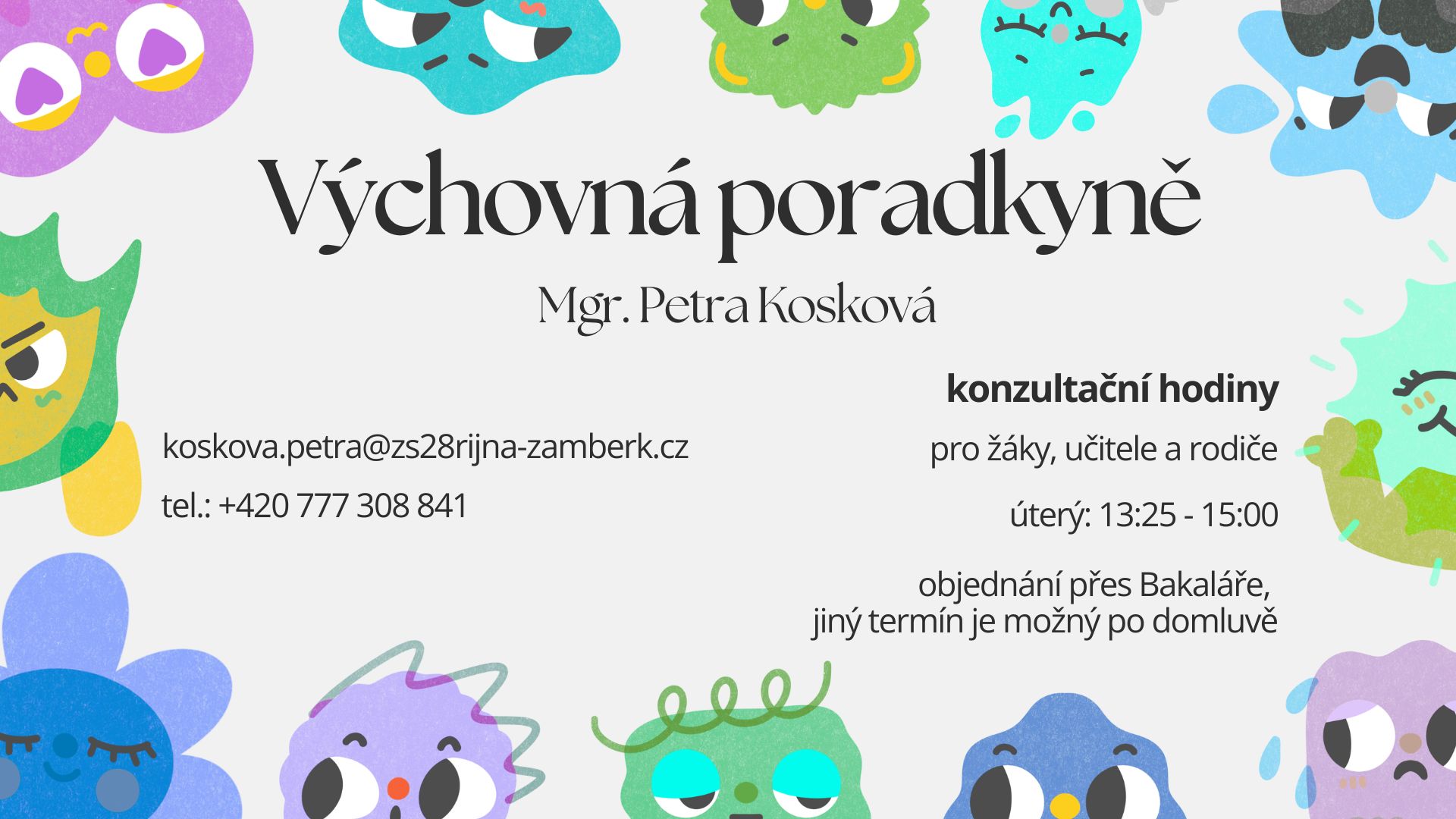 Funkci "výchovné poradkyně" na škole vykonává: Mgr. Petra Kosková