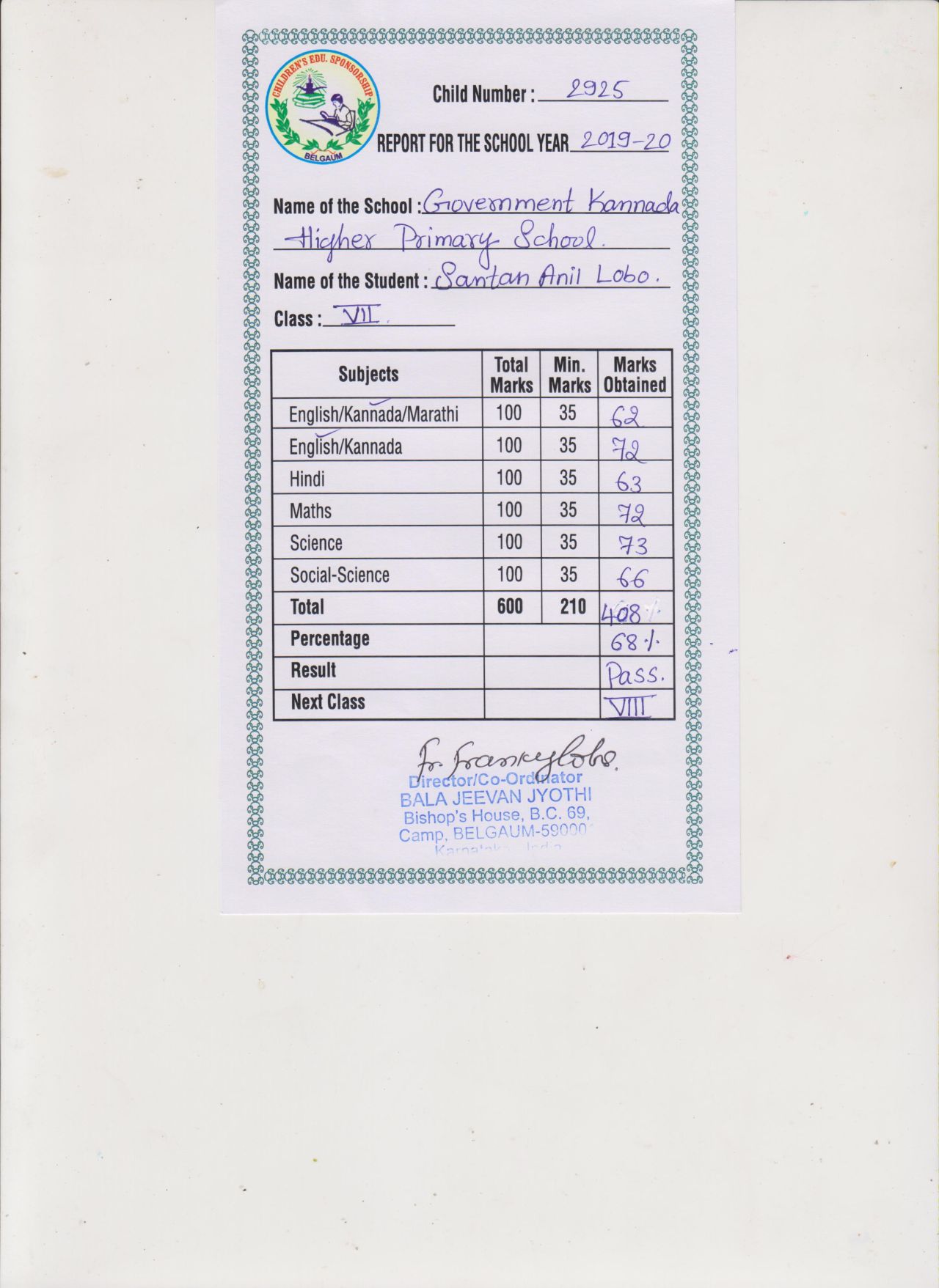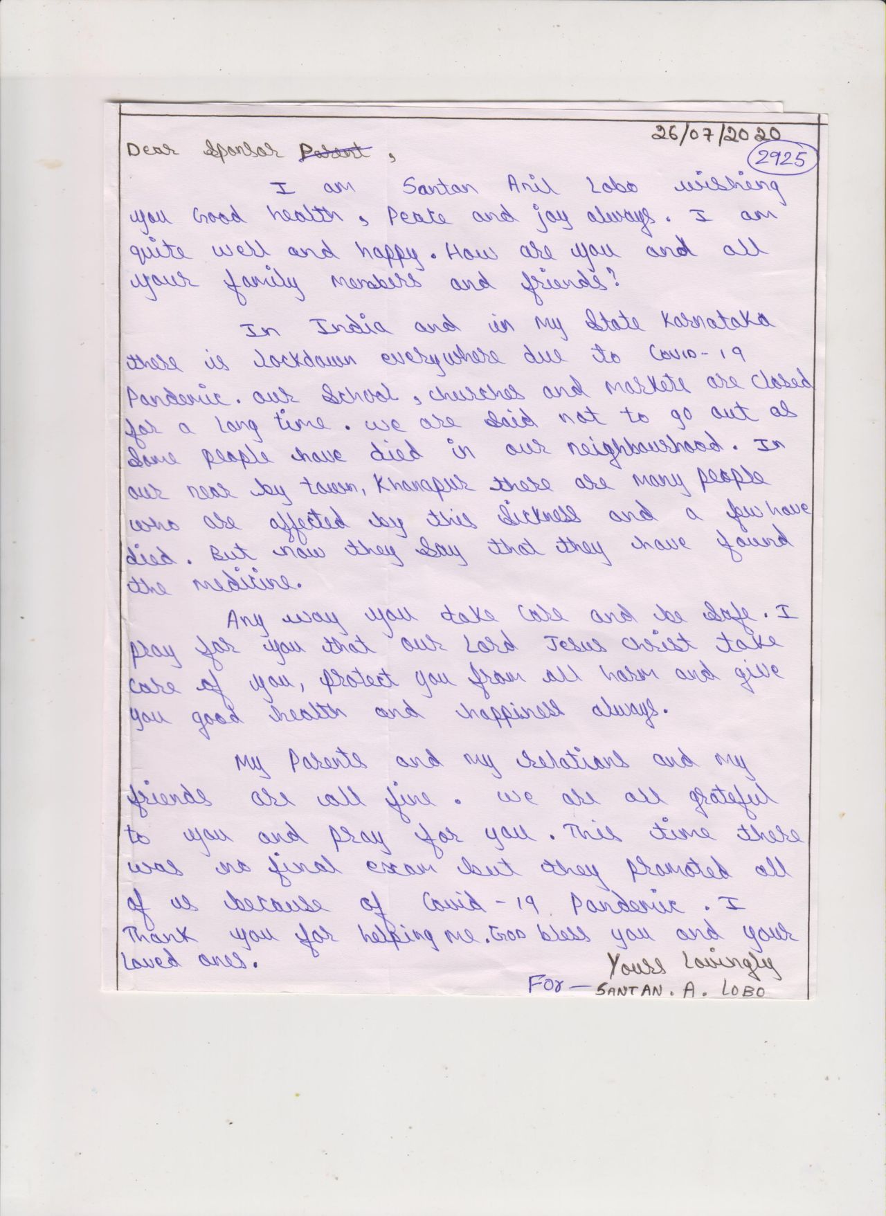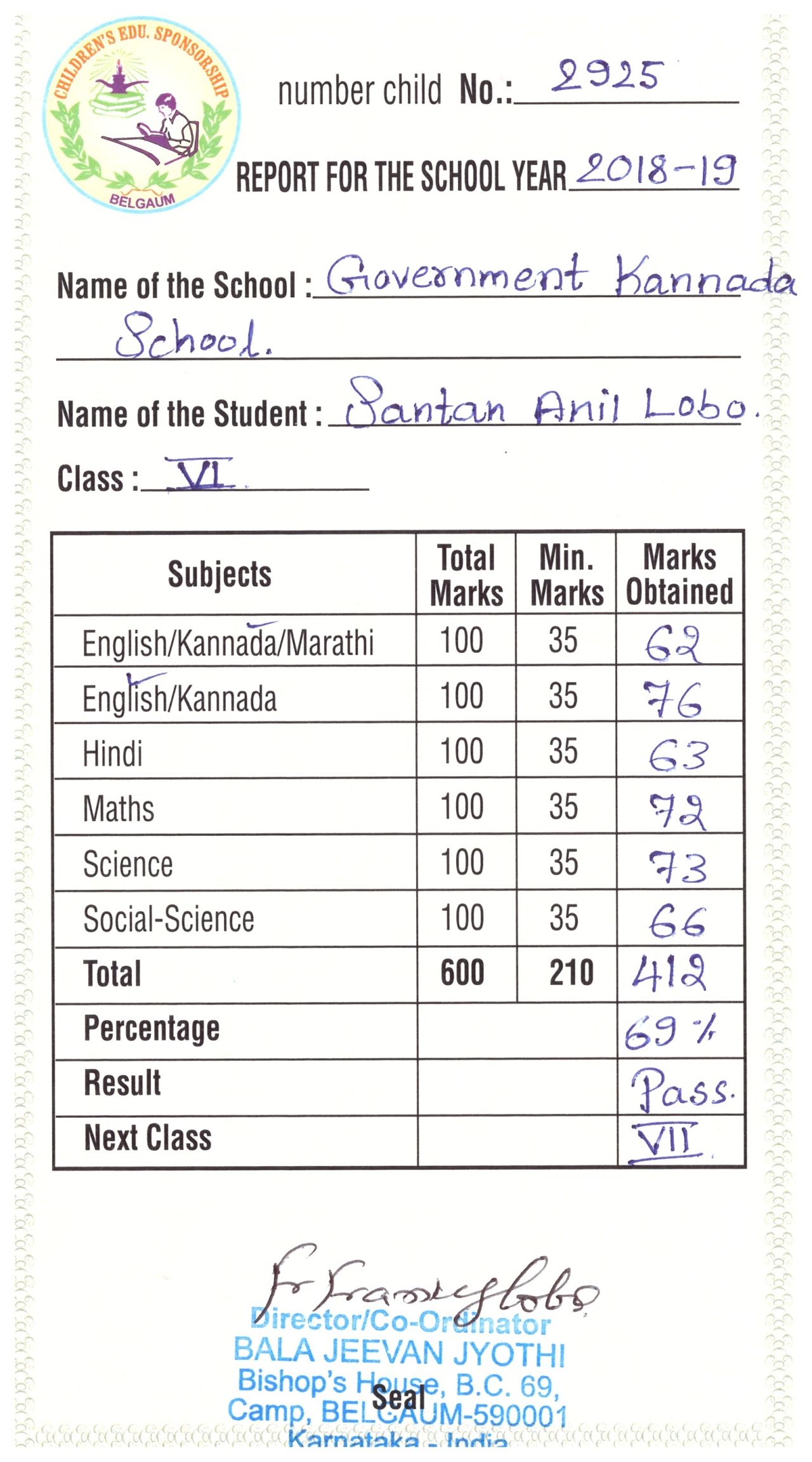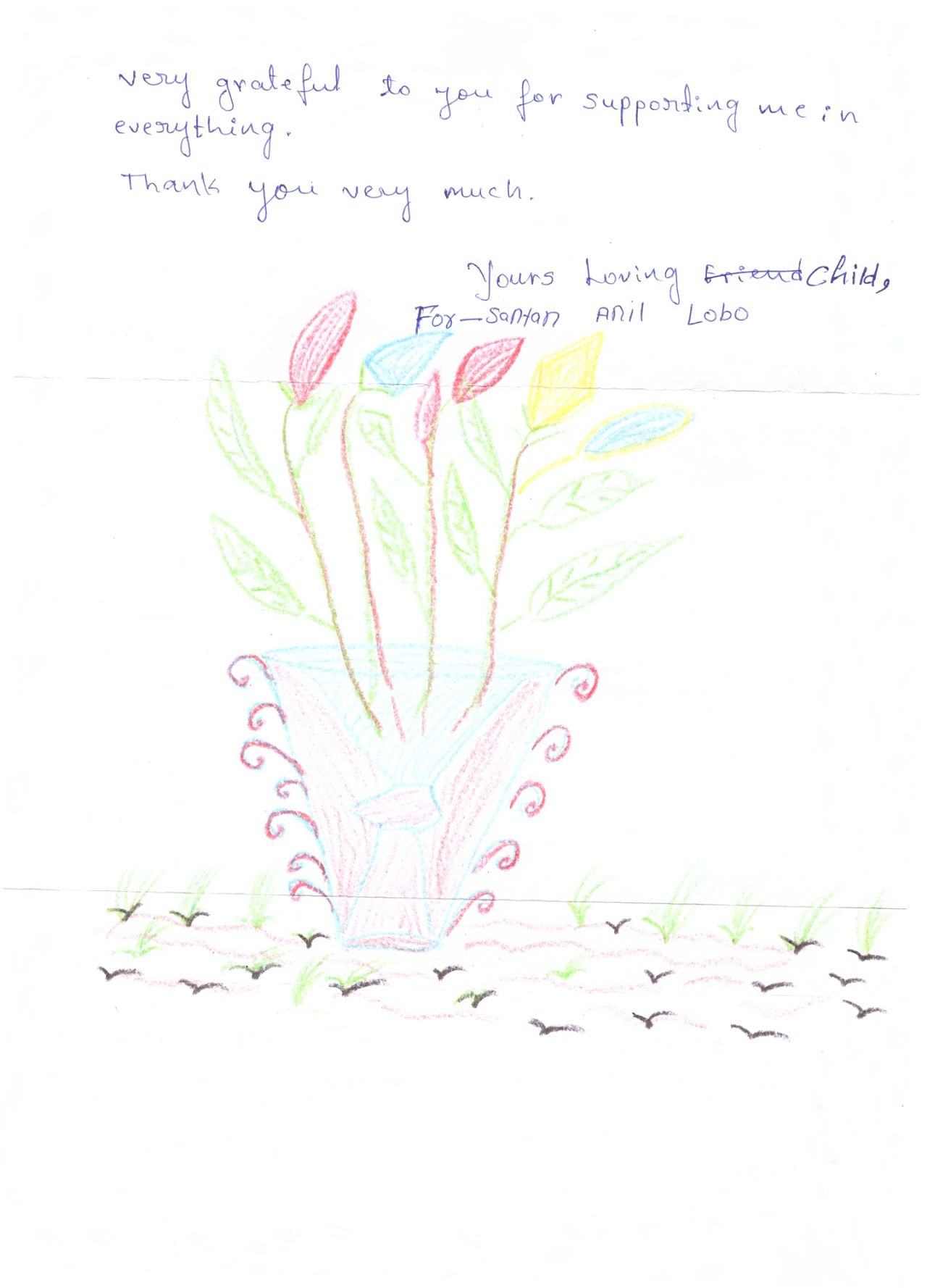 Věděli jste, že naše škola „adoptovala“ indického chlapce? Jmenuje se Santan Anil Lobo, narodil se v roce 2006 a naše škola ho v roce 2014 adoptovala v rámci projektu Adopce na dálku, který organizuje Diecézní katolická charita Hradec Králové (adopce.hk.caritas.cz).
